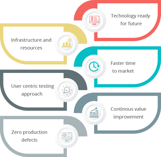 With 50-70% test automation levels and reduction in test times by 30%, taking the products to market faster would become a reality.